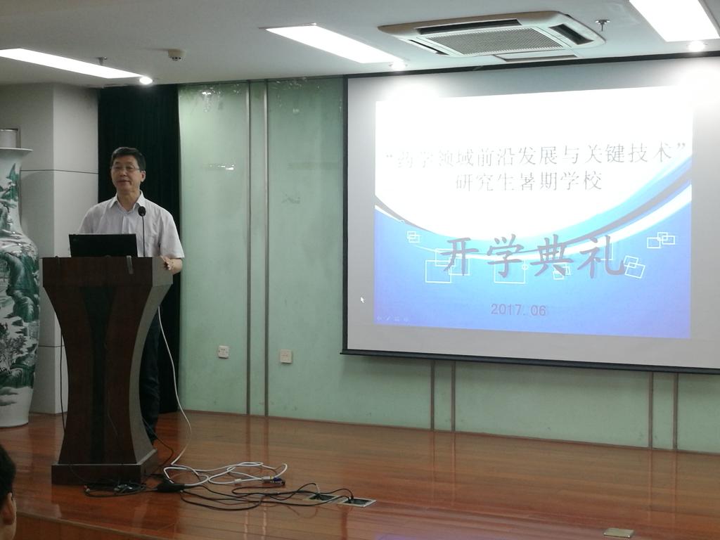 首先,刘新泳院长致辞。刘院长介绍了暑期学校举办的初衷,并寄语学员们认真对待这次学习机会,了解药学领域前沿知识,并鼓励来自不同学科的研究生相互交流,注重不同领域间的协同与连接,全面了解药学相关领域的发展动态。随后,2016级研究生代表汤博皓发言,表示将珍惜学习机会,努力提升自我。最后,张建教授向学生们介绍了课程安排和主要内容,并希望大家借助暑期学校这一学习交流平台,拓宽学术视野,正确面对学业和生活中的困难,保持良好心态。典礼之后,刘新泳院长做了第一场学术报告,题目为“医药产业发展现状与新药研发的前沿”。