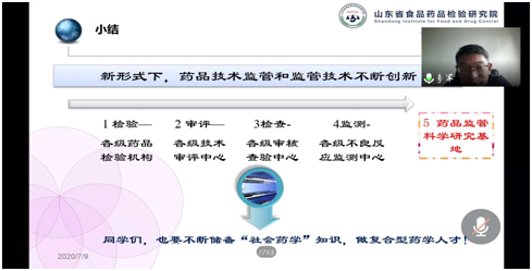 7月9日下午,米乐研究生暑期学校于线上开展第十四期主题为“药品技术监管”的专题讲座,受邀嘉宾是山东省食品药品检验研究院党委书记,理事长李军。会议由米乐副院长张建教授主持,2019级全体硕士及博士研究生参与会议。 会议于下午四点正式开始,张建教授做简要介绍后,李军书记从药品检验机构组织架构,药品检验工作程序,药品质量标准研究,药品风险识别与控制以及药品监管科学五个方面展开论述。李书记提出,药品检验机构组织包括机构设置,人员设置,实验设施和仪器设备,并详细的介绍了各组成部分的要求和分类。而后,李军书记就药品检验工作程序进行了详细的讲解,包括药品检验分类,检验依据,检验工作质量保证等等。李书记讲到,为确保药品检验全过程的工作质量,应建立质量管理体系。在药品质量标准研究方面,提出必须坚持质量第一的制定药品质量标准的原则。在药品风险识别与控制方面,详细的介绍了药品质量与安全控制的各个环节。最后,李书记简要的介绍了药品监管科学,并耐心的为同学们解疑答惑。 李军书记的讲座内容条理清晰,简洁明了,使同学们对于药品检验与技术监管有了更加清晰的认识,更对同学们在未来从事相关研究工作有很大的指导意义。