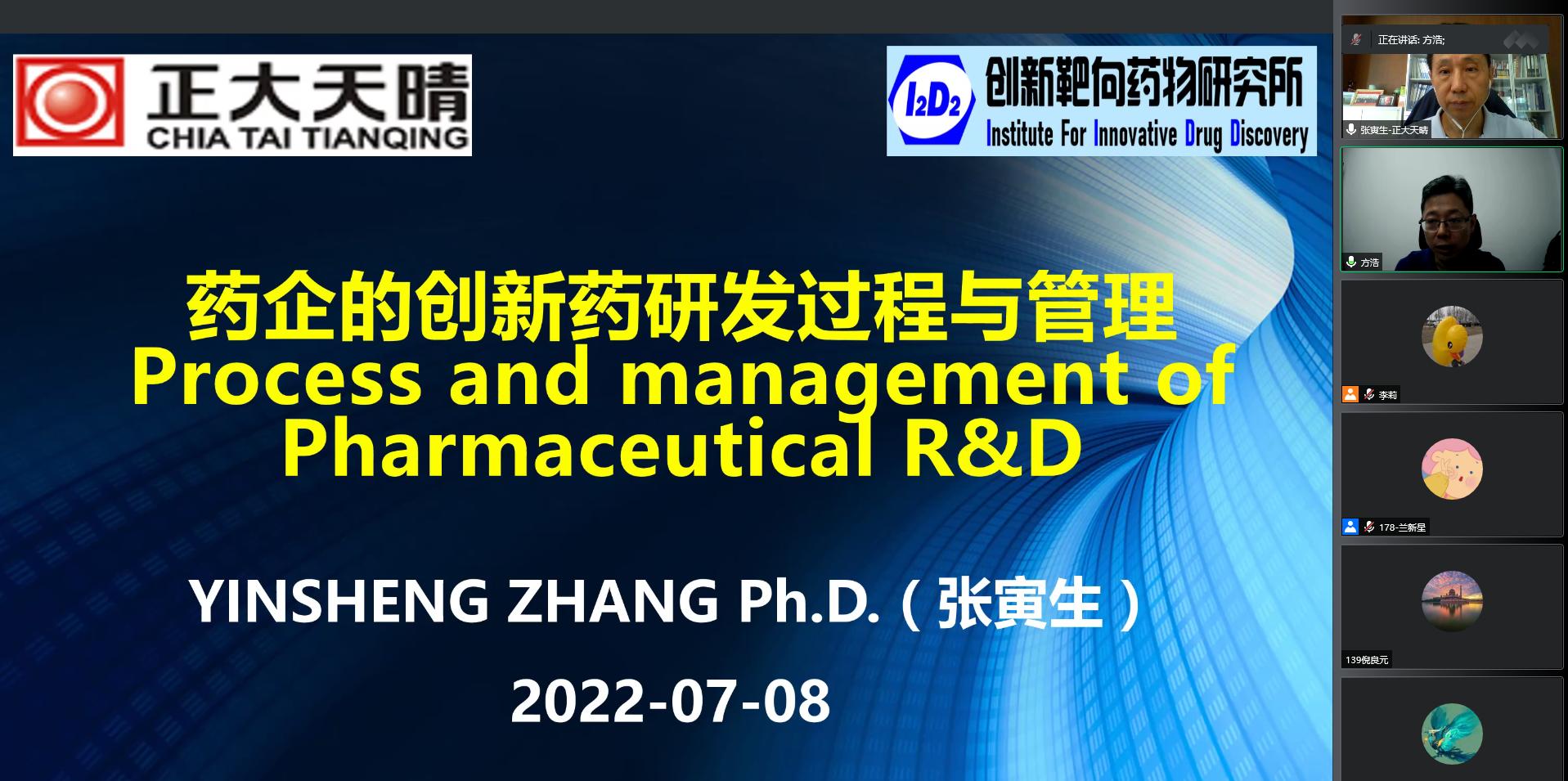 2022年7月8日,米乐研究生暑期学校课程之“药企的创新药研发过程与管理”讲座通过腾讯会议线上进行,讲座专家是正大天晴集团的张寅生院长。