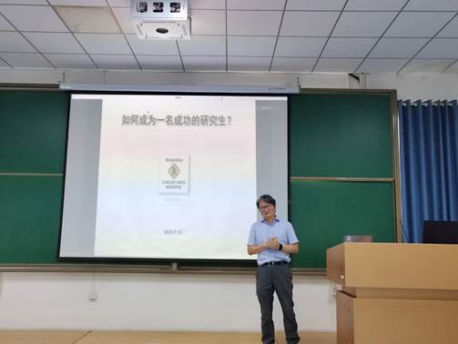 李敏勇教授围绕“如何成为一名成功的研究生”这一主题,结合自身学习与教研经历,通过各种生动形象、浅显易懂的实例向大家展示了作为一名合格的研究生应当具备的素质以及在科研、生活及日常学习中应当怎么做。李敏勇教授深入浅出,教导同学们应耐住性子、沉浸在科研生活中,勤奋执着才能有所成就,全体同学认真聆听,受益匪浅。