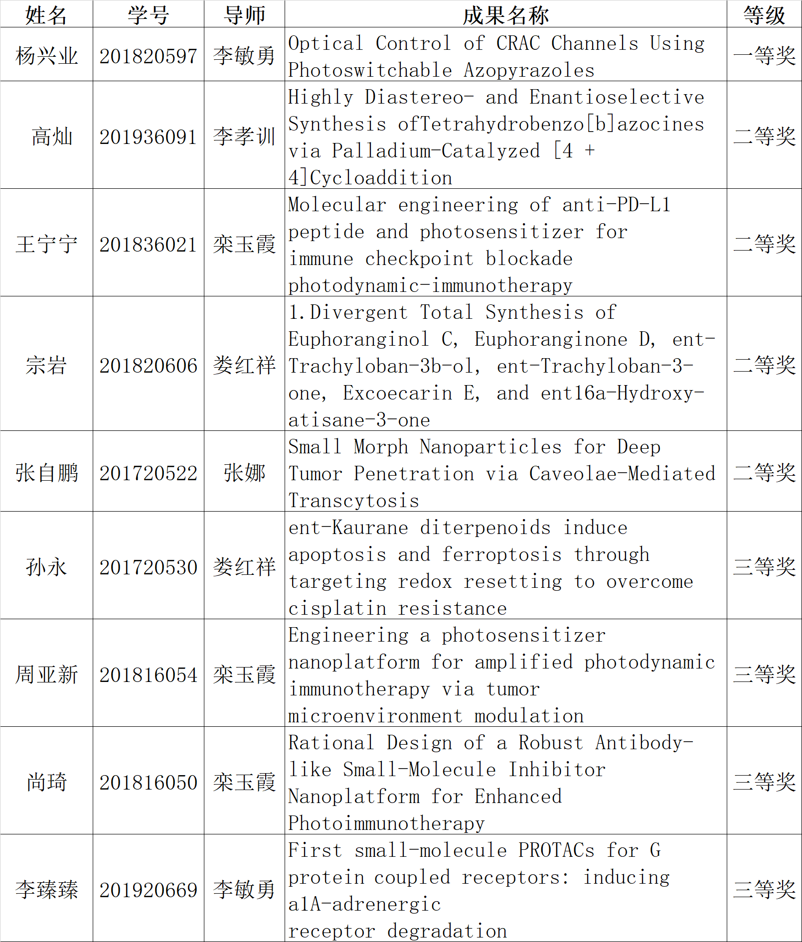 2021年山东大学研究生优秀学术成果奖获奖名单
