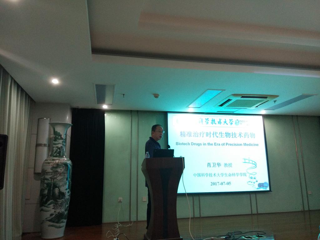 2017年7月5日,中国科学技术大学生命科学学院的肖卫华教授在本期暑期学校汇总进行了题为“精准治疗时代生物技术药物”的讲座。 讲座首先从现今上市的十个药物出发,统计分析了其治愈率,向大家展示了现今药物治愈率低下的普遍情况。而后,肖卫华教授对比了传统治疗手段和精准治疗手段,说明了精准治疗的高治愈率。肖卫华教授从现今药物的靶向治疗与免疫治疗出发,阐释了两者各自的生存率与时间的关系,阐明免疫疗法虽然在起初的几个月,疗效并不明显,但随着时间推移,患者生存率却在增高,而现今药物流行的靶向治疗虽再起初的几个月里疗效显著,但可能由于癌细胞转移等原因,随着时间的推移,生存率并没有见长的情况。肖卫华教授还向为我们讲述了靶向治疗+免疫治疗的高生存率,同时表示靶向药物和免疫疗法的药物种类繁多,其不同的组合会呈现出不同的治疗情况。因而说明了精准医学未来所着重解决的问题即是靶向药物与免疫疗法药物的组合的选择性问题。讲座的第二部分进一步深入地向同学们介绍了肿瘤免疫治疗。 通过此次讲座,同学们深入了解了精准治疗的概念及其广阔的发展前景,系统学习了肿瘤免疫疗法的相关知识及其发展的潜力,开阔了眼界,丰富了知识,获益良多。