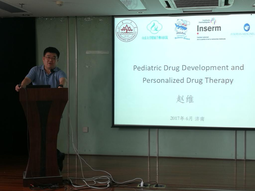 6月27日下午,研究生暑期学校于趵突泉校区科研楼五层报告厅举行了第二场学术报告。本次学术报告主讲人为山东大学临床药学教授赵维。报告题目为:“Pediatric Drug Development and Personalized Drug Therapy”。 赵维教授现任职山东大学临床药学教授、博士生导师,山东大学附属千佛山医院主任药师。 赵维教授在儿童临床用药和药物审评监测方面有着极为丰富的经验。赵教授提及,国内目前绝大多数药物临床试验都是在成人中进行,儿童的临床试验尚处于起步阶段,因此新生儿的药物临床研究有着极为重要的意义。本次报告赵教授也紧紧围绕着这个主题,并主要通过四个问题的方式展开了本次报告:一,如何通过动物模型来预估儿童浓度依赖性药物的不良反应。二,如何通过桥接技术预估儿童用药
