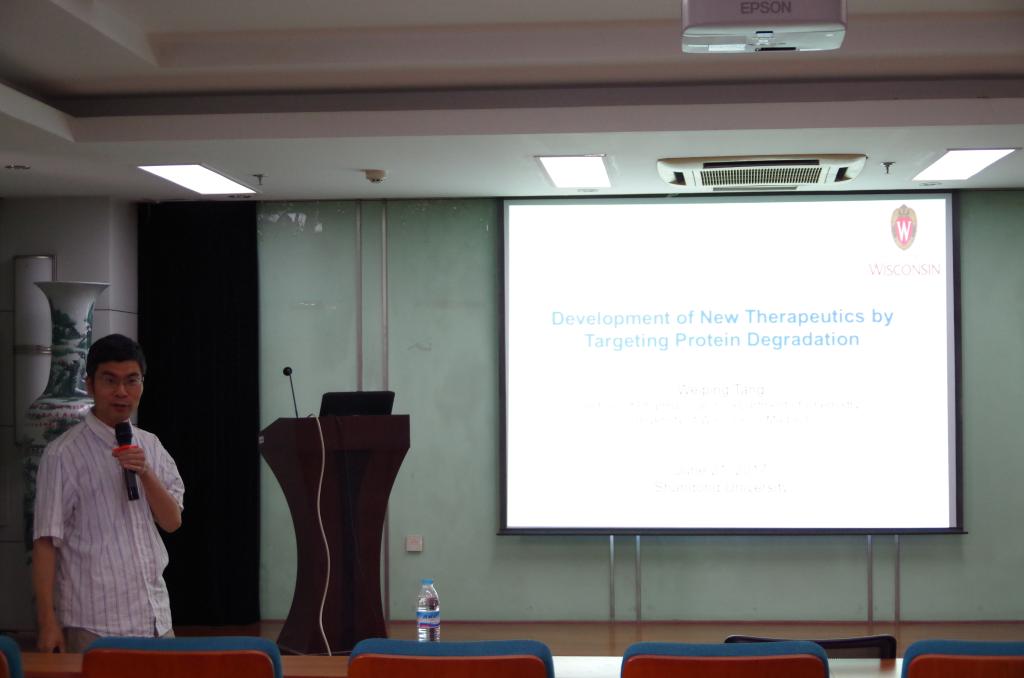 2017年6月21日上午,美国威斯康星大学麦迪逊分校米乐·M6(China)官方网站唐维平教授在药学科研楼五楼报告厅举行了一场题为“Development of new therapeutics by targeting protein degradation”的讲座。本次讲座由方浩教授主持,多名博士及硕士研究生参加。 唐维平教授,1997年毕业于北京大学,1999年于美国纽约大学获得硕士学位,2005年于斯坦福大学获得博士学位,随后作为博士后进入哈佛大学,2007年完成博士后研究工作,同年加入威斯康星大学米乐·M6(China)官方网站,任助理教授,2015年任药化中心主任,2016年晋升为终身教授。 唐教授多年来主要从事有机合成方法学、活性天然产物全合成、药物化学及化学生物学研究,以解决活性天然产物全合成以及药物化学研究的实际问题。自2007年独立研究以来已完成了mahanimbine、harringtonolide、(-)-kumausallene等九个天然产物的合成。特别是发展了新型高效的立体选择性合成方法,首次实现了利用有机胺催化共轭炔烯卤化环化制备联烯卤化物,开拓了一系列金属铑催化的等,并成功的将上述方法应用于环丁烷类、溴代丙二烯和吲哚类天然产物的全合成。 唐维平教授在讲座一开始就点明了合成方法学、天然产物全合成及药物化学和药物发现之间的联系,对自己几年来的研究做了一个总结,并且介绍了实验室近期糖化学和糖生物学的研究课题。随后唐教授以吲哚为实例,生动地讲解了其新型合成方法的建立。该合成方法可以解决多取代吲哚合成的问题,更有利于吲哚类化合物进一步的衍生。唐教授还将该合成方法应用于活性天然产物Diptoindonesin G (Dip G) 全合成研究,合成了一系列衍生物,并对小分子调控蛋白降解做了进一步的生物学研究。 唐教授在讲座结束后与学生密切互动,并指出蛋白降解在将来的药物发现中可能是一大热点。最后,方浩教授对此次讲座做了精彩点评。 (文/徐玉良)