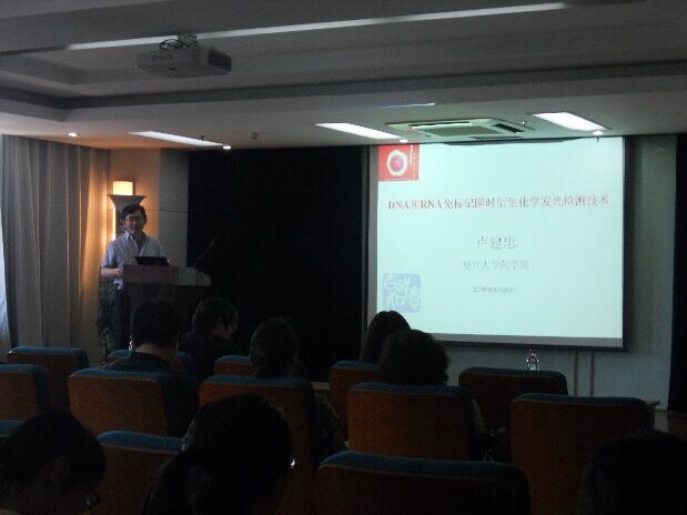 2016年5月25日下午,药物分析博士论坛在新科研楼五楼报告厅成功举办。本次论坛由米乐·M6(China)官方网站副院长刘新泳主持,特邀复旦大学米乐·M6(China)官方网站卢建忠教授做了题为“DNA和RNA免标记瞬时衍生化学发光检测技术”的报告。多名博士与硕士研究生参加了此次讲座。 卢教授在博士期间开始接触化学发光,2000年重新着手化学发光方面的研究后,一直致力于这方面的研究。特定序列DNA和RNA的分析在基因筛选、法医学鉴定、遗传疾病的早期诊断和治疗、病原基因的测定方面具有十分深远的意义。在这次讲座中,卢教授主要介绍了自己课题组利用化学发光法以及各种信号扩增策略检测DNA和RNA的相关工作,拟达到更灵敏、更特异、更简单的检测目的。此外,卢教授还简单介绍了自己课题组在药物分析与质量控制方面的相关研究,如创新性药物去甲泽拉木醛、双酚二胺四乙酸二钠钙的质量标准与稳定性研究,蛋白多肽类药物如聚乙二醇化重组人生长激素、聚乙二醇化重组人干扰素的非临床药代动力学研究等。报告结束后,各位师生与卢教授进行了热烈的互动。最后,刘院长对吕教授的报告做了精彩的点评,讲座在大家的掌声中落下帷幕。 (文: 吴丹丹)